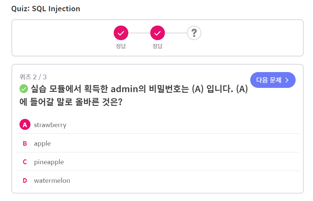 이렇게 이용자가 SQL 구문에 임의 문자열을 삽입하는 행위를 SQL Injection이라고 합니다.